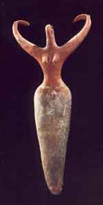 In nessun modo si deve confondere la filosofia da cui derivano queste immagini con quella del mondo pastorale indoeuropeo, nel quale gli dei guerrieri a cavallo rappresentano il cielo radioso o tormentoso, o anche l'inferno paludoso, l'ideologia per cui le dee non sono creatrici, bensì bellezze ("Venus") sposate con gli dèi-cielo. L'arte che riguarda la Dea, con la sua sorprendente assenza di immagini di guerra e di dominazione maschile, riflette un ordine sociale in cui le donne, in quanto capi di clan o sacerdotesse-regine, assumono un ruolo centrale. La Vecchia Europa(1) e l'Anatolia, come pure la Creta Minoica, erano una "gylania" (2). Questo sistema sociale equilibrato, nè patriarcale nè matriarcale, lascia il suo riflesso nella religione, nella mitologia e nel folklore che si ricavano dagli studi della struttura sociale corrispondente alle culture minoiche e della Vecchia Europa, ed è rafforzato dalla continuità degli elementi in un sistema matrilineare come quelli della Grecia Antica, dell'Etruria, di Roma, del Paese Basco e di altri paesi dell'Europa.
